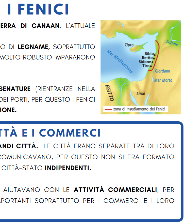 Testo semplificato accompagnato da immagini su i Fenici, le loro città, i commerci e le loro colonie.