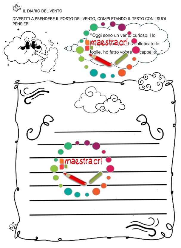 Un’attività originale che invita a scrivere dal punto di vista del vento: pensieri, emozioni e avventure prendono forma in testi creativi e sorprendenti. La cornice è fotocopiabile per ampliare il lavoro.