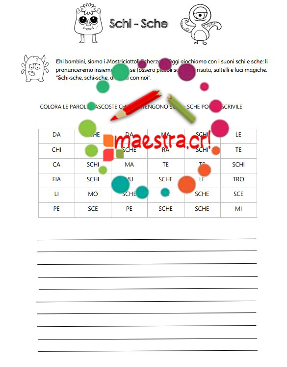 Questo pacchetto didattico è pensato per introdurre e consolidare i suoni SCHI e SCHE.
