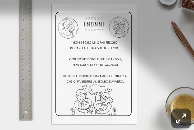 Insieme alla poesia ci sono anche i disegni da colorare, così i bambini possono unire lettura e creatività in un’unica attività divertente e affettuosa, dedicata ai nonni.