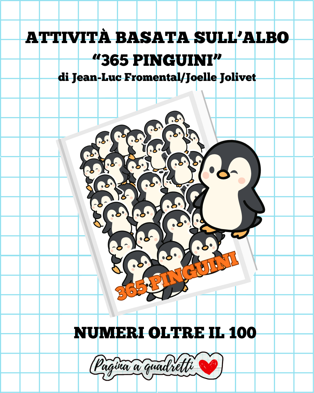 Immergiti nel mondo dei numeri oltre il 100 con questo fantastico materiale didattico, ispirato al celebre albo illustrato “365 Pinguini” di Jean-Luc Fromental e Joelle Jolivet! Questo pacchetto di attività è pensato per rendere l’apprendimento dei numeri fino a 200 un’esperienza divertente e coinvolgente per i tuoi alunni.