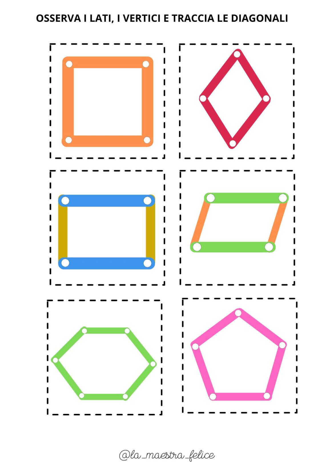 Il file contiene sei poligoni realizzati con i Geostix per permettere di osservare gli elementi delle figure piane e tracciare le diagonali.