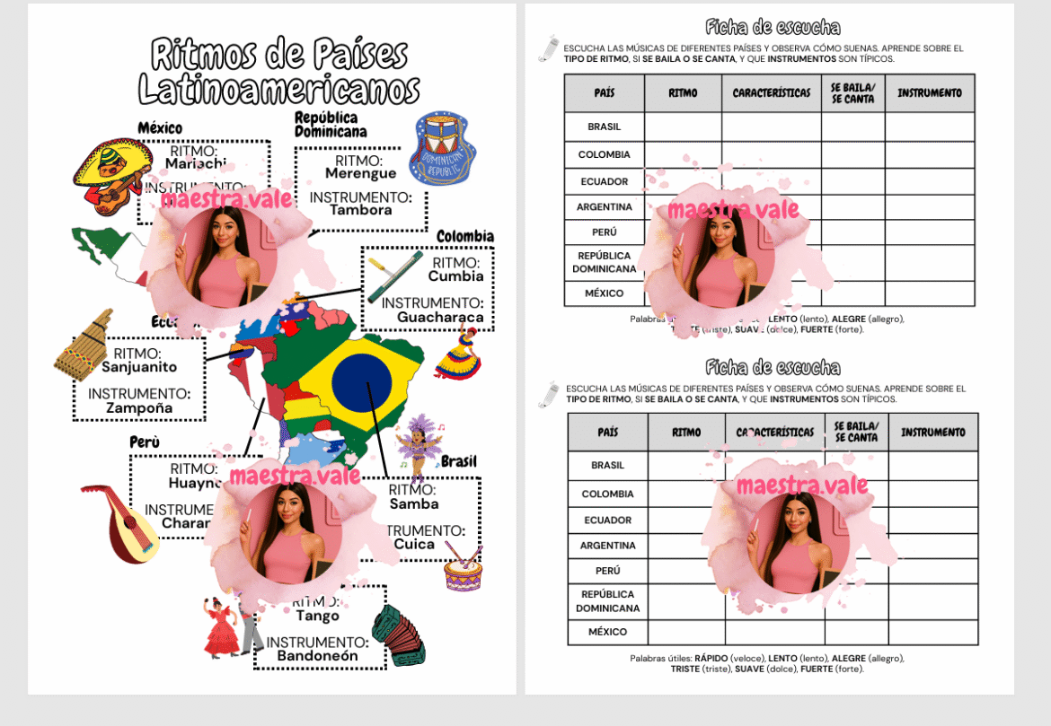 – Scheda con mappa dell’America del Sud: con frecce che collegano ogni Paese al suo ritmo e strumento tipico, perfetta per attività di orientamento geografico e musicale