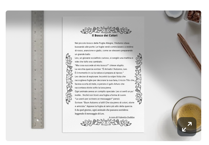 Porta i bambini alla scoperta del Bosco dei Colori, un’avventura autunnale piena di magia e curiosità! In questa scheda didattica, i piccoli lettori seguono le vicende di uno scoiattolo curioso che, vagando tra gli alberi colorati, scopre alla fine una foglia a forma di cuore e lascia un messaggio speciale per tutti: “Buon Autunno a tutti!”
