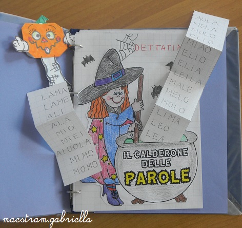 scheda didattica con taglio da eseguire sul calderone per inserire le fisarmoniche con le parole