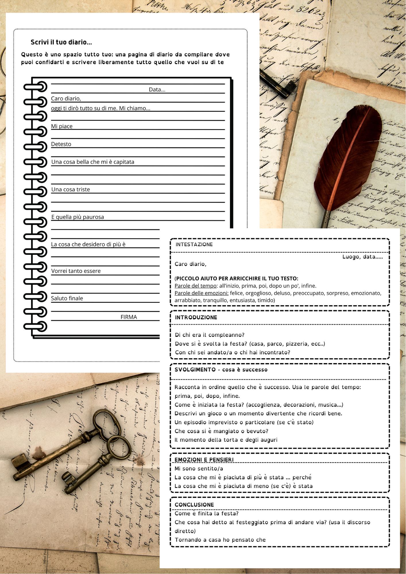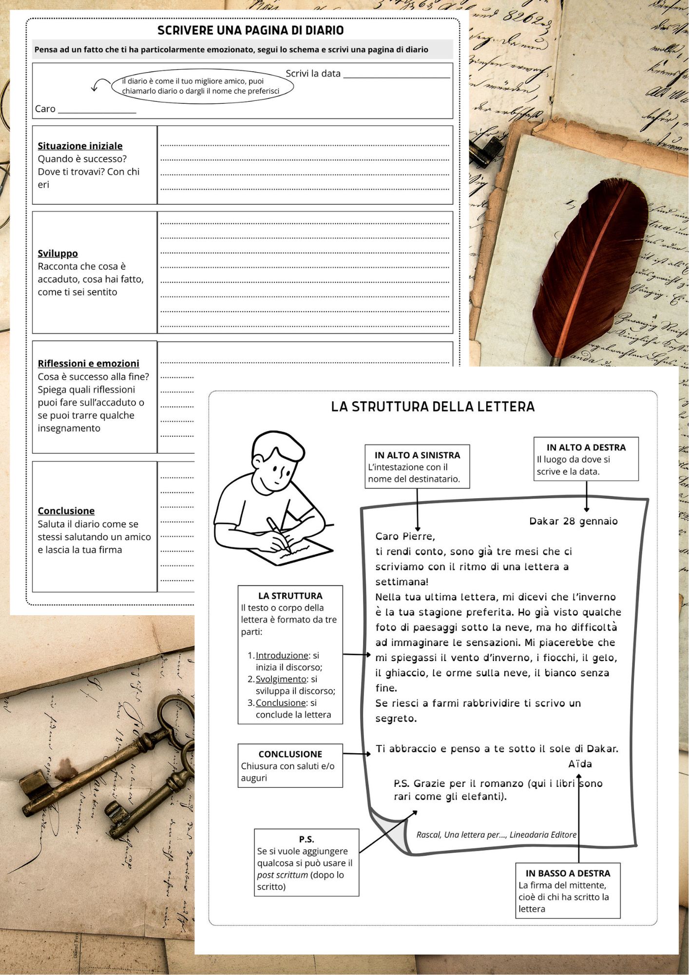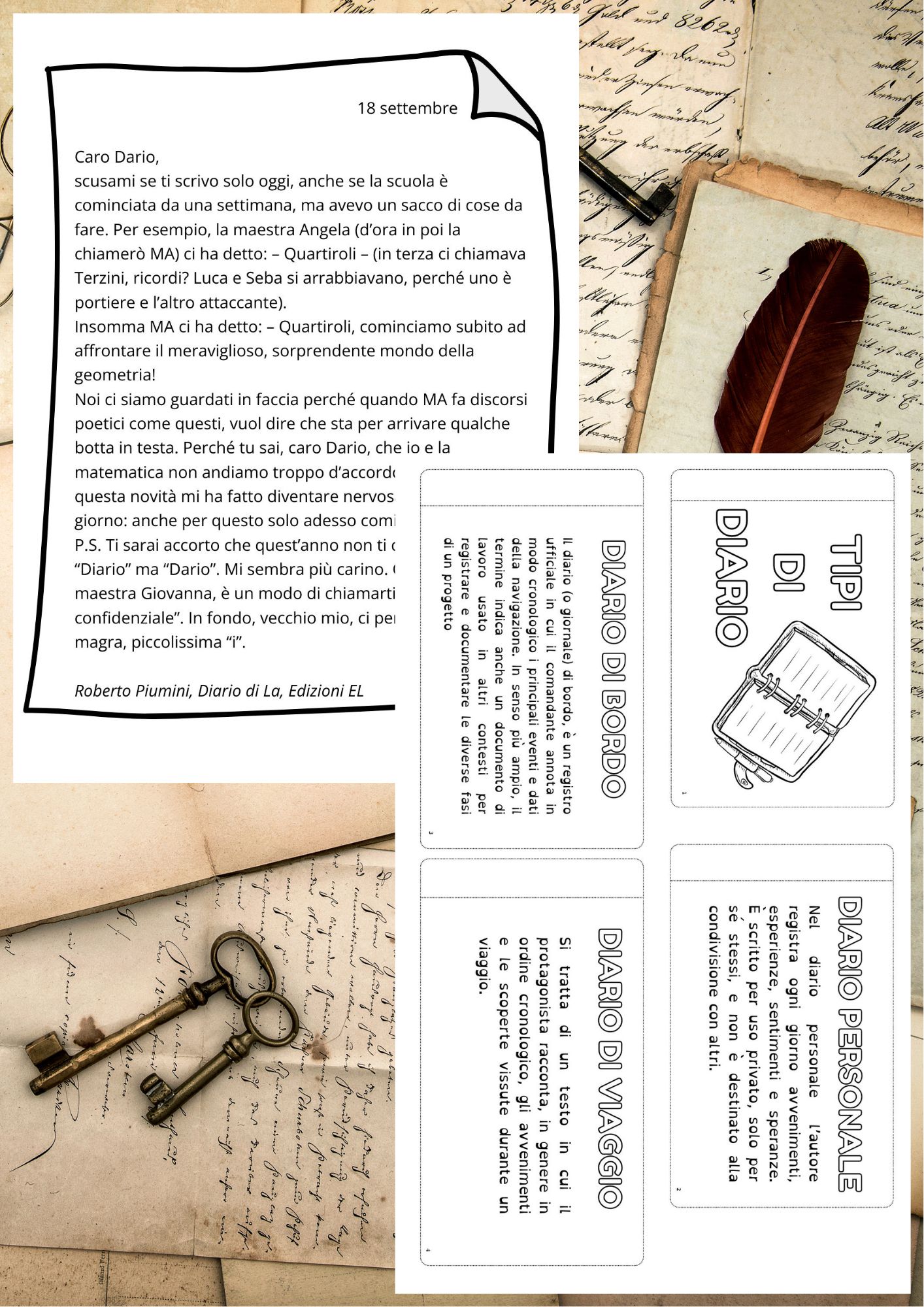 IL DIARIO E LA LETTERA – Kit da realizzare sul quaderno Il diario e la lettera sono spesso la “porta d’ingresso” più potente alla scrittura: abbassa le difese, perché i bambini possono raccontarsi senza sentirsi giudicati e trovano finalmente qualcosa di vero da dire.