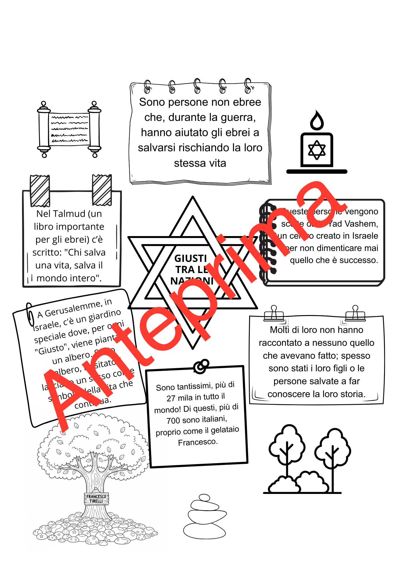 Mappa Concettuale “I Giusti”: Una guida visiva semplice e chiara per spiegare chi sono i “Giusti tra le Nazioni”, il significato dell’albero a Gerusalemme e il concetto che “chi salva una vita, salva il mondo intero”.