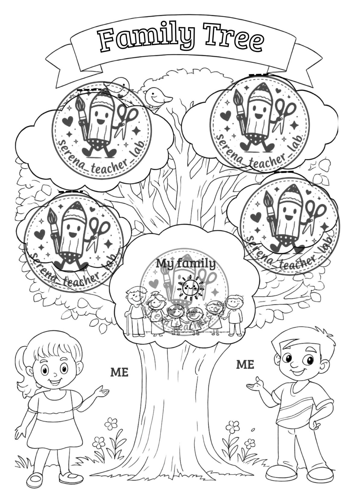 albero genealogico illustrato in formato A4