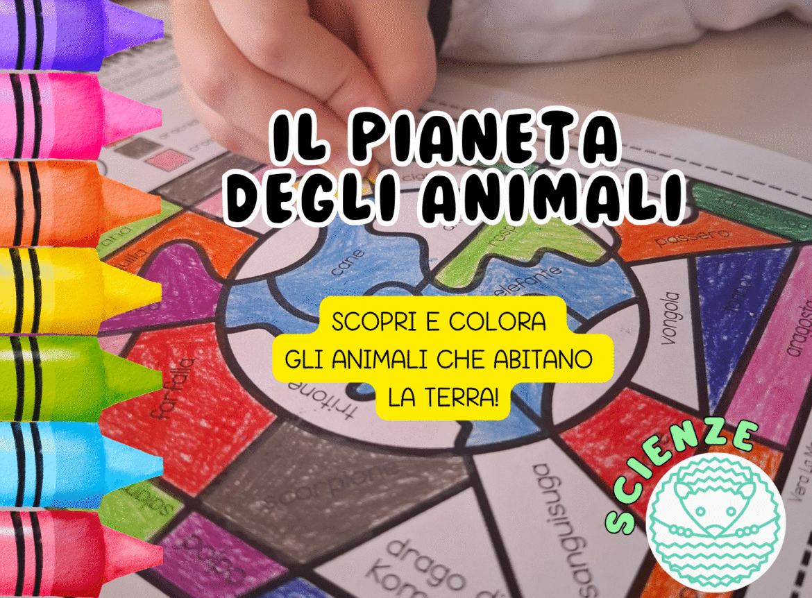 Una volta completata, la scheda si trasforma in un “Pianeta degli Animali” colorato e vivace, perfetto per ripassare e stimolare nuove domande!