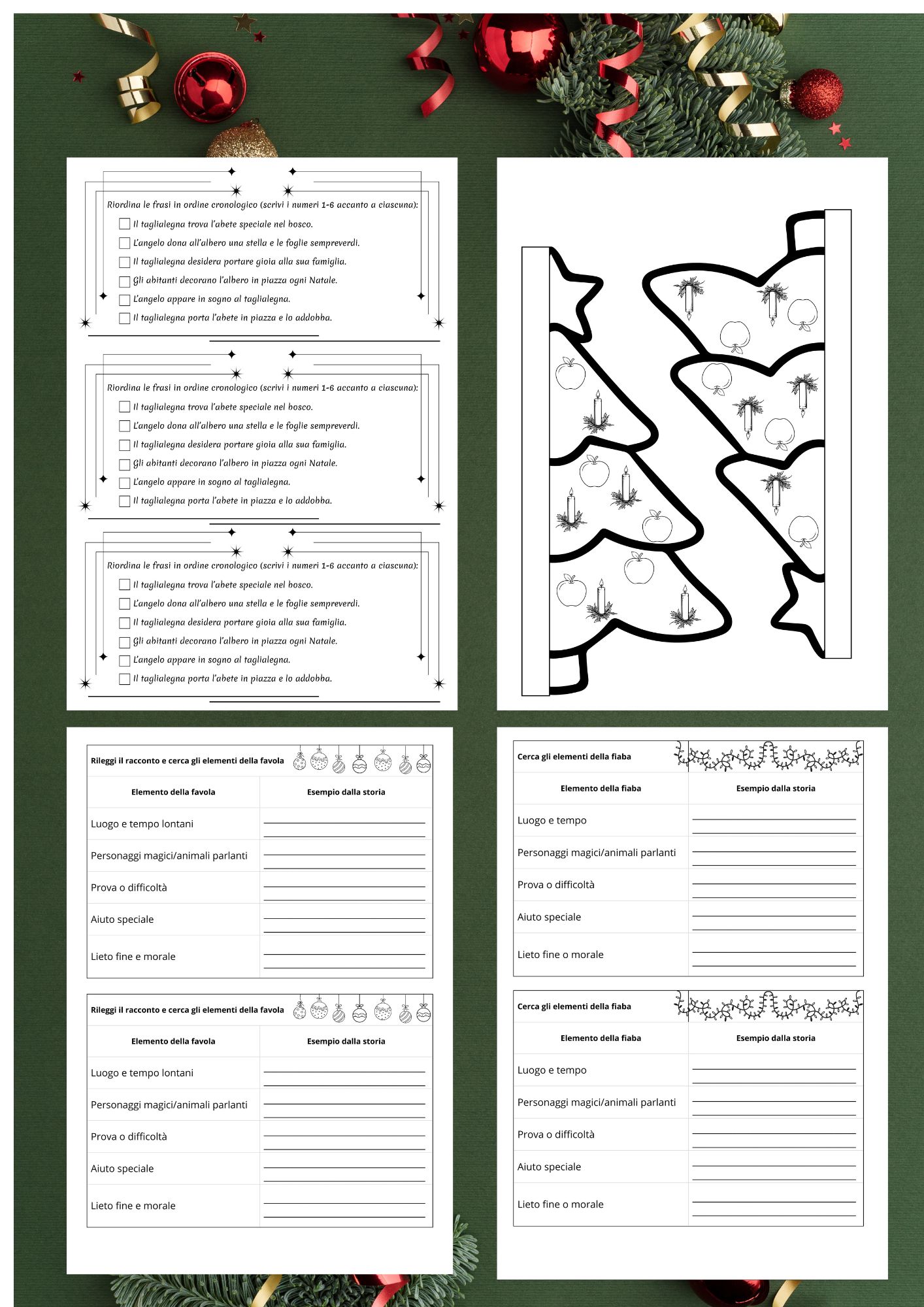 Materiali operativi per costruire il quaderno dei tuoi alunni. Stampa, distribuisci e parti subito con il laboratorio (previste anche stampe multiple nello stesso foglio, per evitare sprechi). Il percorso didattico si articola in diverse tappe: 🖊️ Cos’è un racconto fantastico– gli elementi e le caratteristiche principali 🖊️Quali testi comprende 🖊️La favola: “Rupholph, la renna dal naso rosso” 🖊️La fiaba: “Lo schiaccianoci” 🖊️La leggenda: “La leggenda dell’albero di Natale” 🖊️Ogni testo è accompagnato da esercizi di scrittura creativa, domande di comprensione del testo, analisi della struttura e ricerca degli elementi che caratterizzano il racconto fantastico. Ogni tappa è pensata per essere svolta in una o più lezioni, secondo i tempi e le esigenze della tua classe. Un percorso flessibile che puoi adattare al tuo gruppo! A questo link puoi vedere un reel di presentazione: https://fb.watch/DJBro4d5wX/
