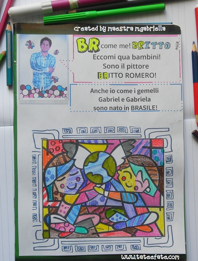 scheda didattica creativa con soggetto quadro di Britto da colorare interdisciplinando arte con italiano
