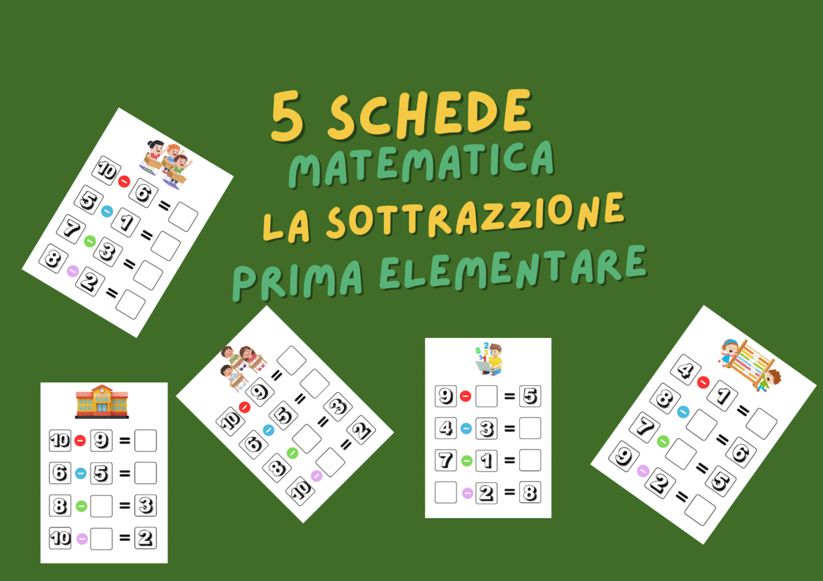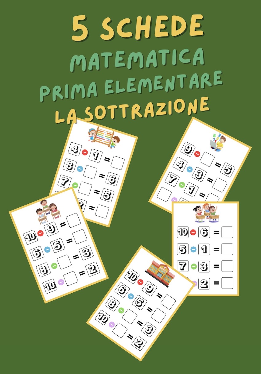 Imparo la Sottrazione entro il 10 – 5 Schede Colorate per la Prima ElementareDigitale