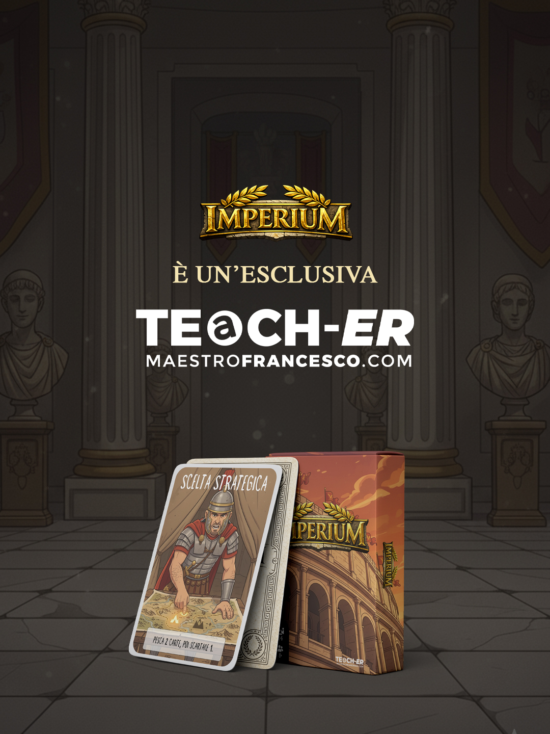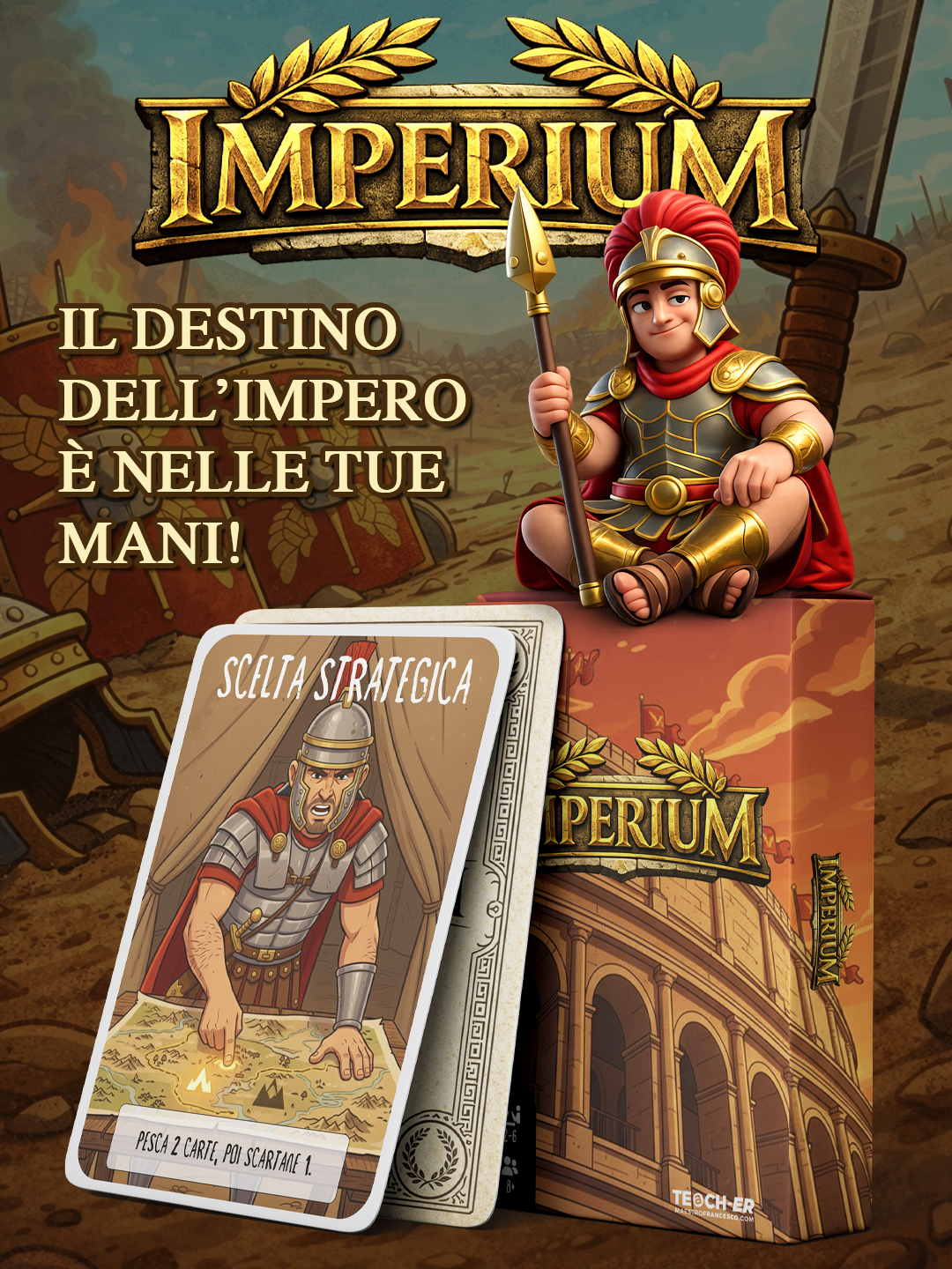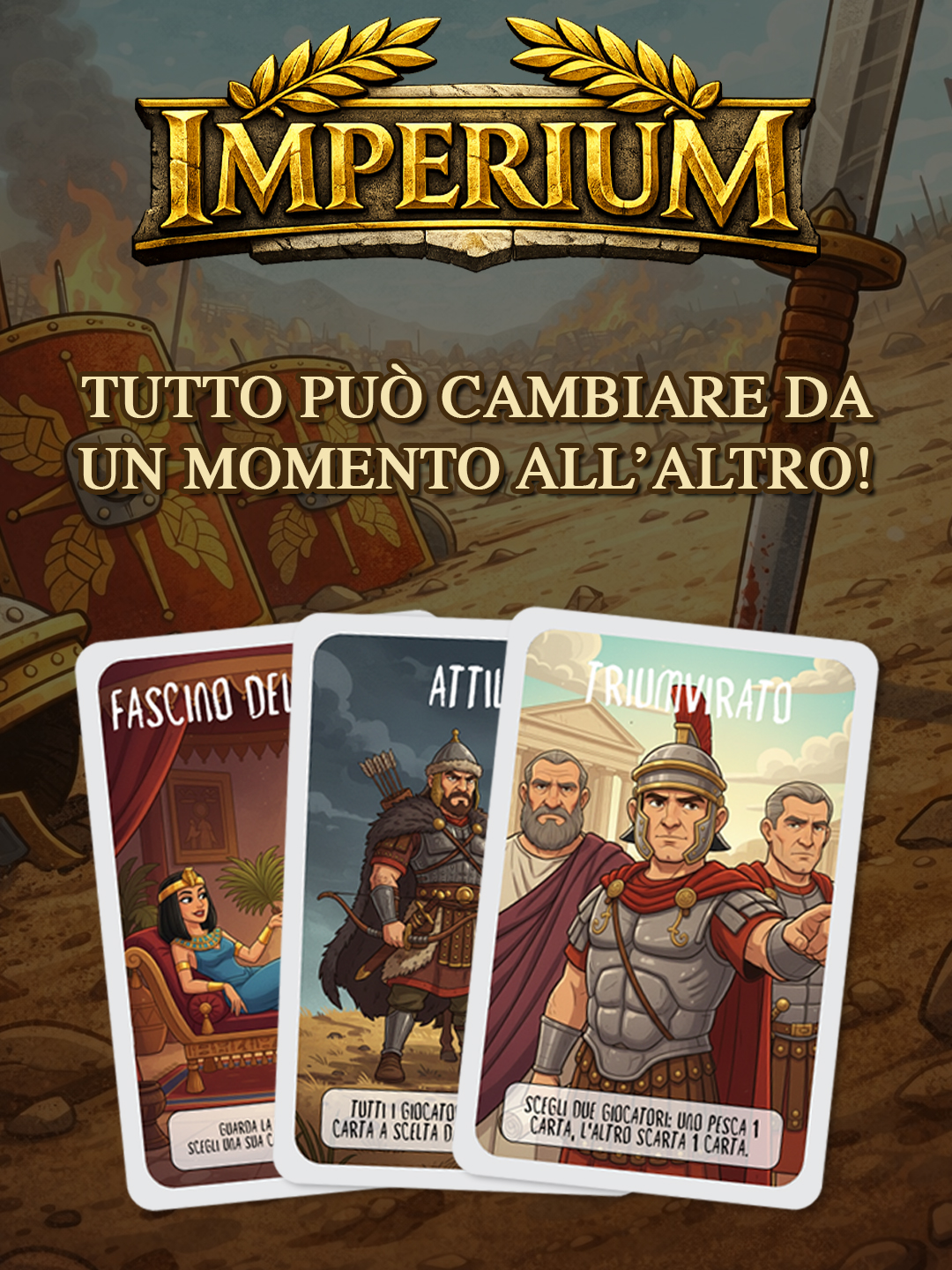 IMPERIUM è un gioco di carte originale ambientato nell’Antica Roma, dove strategie, scelte tattiche e carte evento rendono ogni partita diversa e coinvolgente.