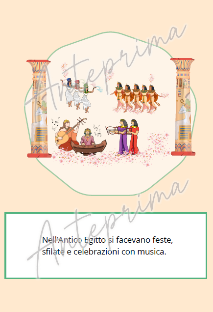 Questo materiale propone un percorso di ascolto musicale semplice e guidato, pensato per la scuola primaria, con un collegamento interdisciplinare alla storia dell’Antico Egitto.