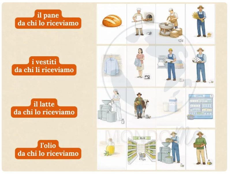Questa risorsa guida il bambino alla scoperta delle interdipendenze umane, mostrando come ogni oggetto e ogni bisogno siano il risultato di una rete di relazioni.