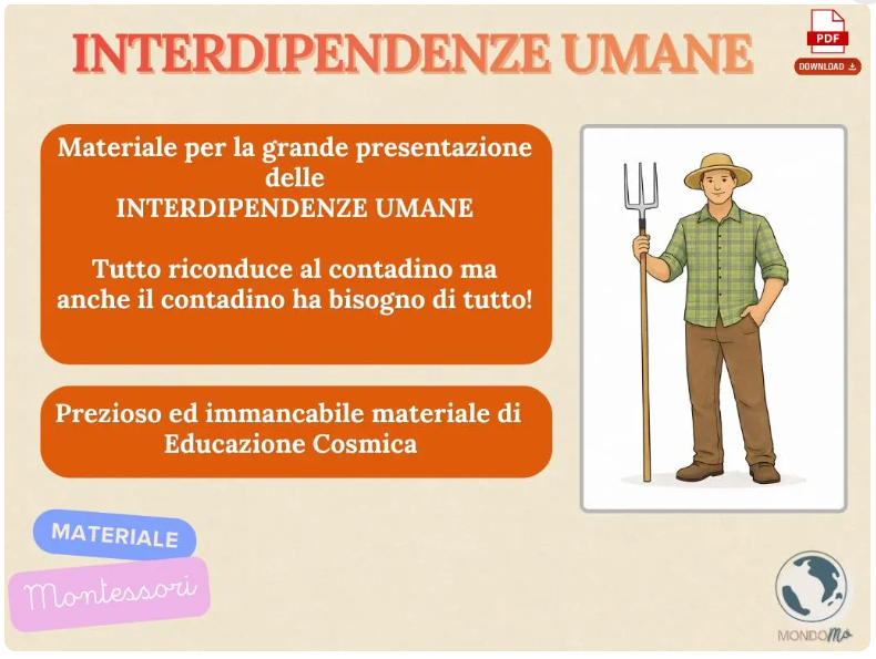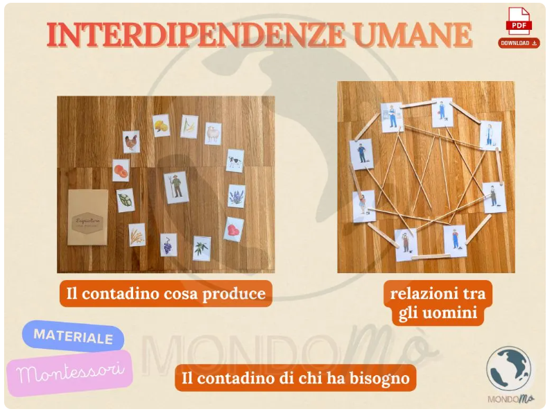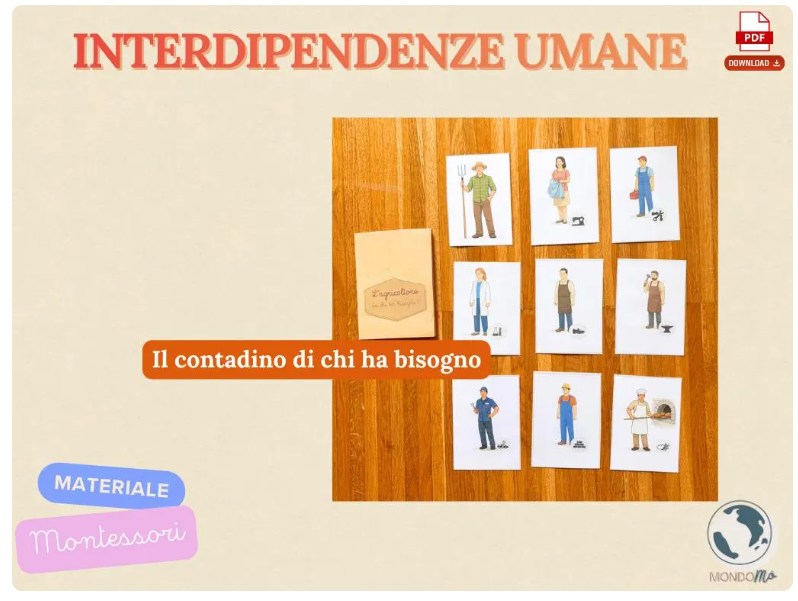 Interdipendenze Umane Montessori – Educazione Cosmica | Carte Didattiche Stampabili PDF | Printable charts MontessoriDigitale