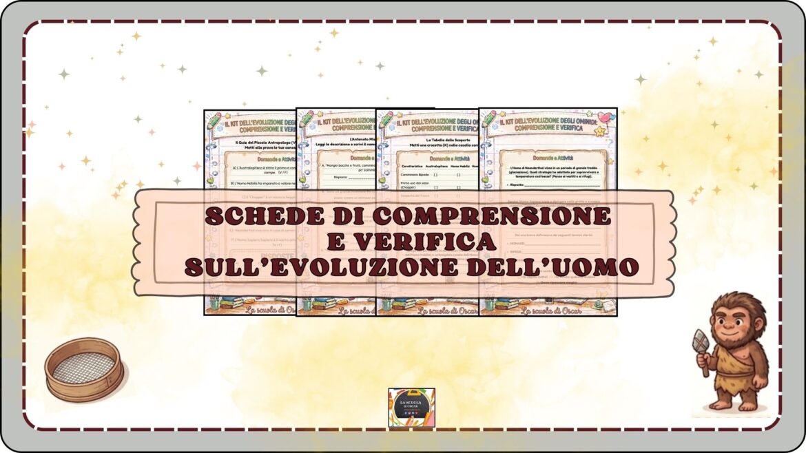 KIT 4 SCHEDE DI COMPRENSIONE E VERIFICA sull’EVOLUZIONE DELL’UOMO.