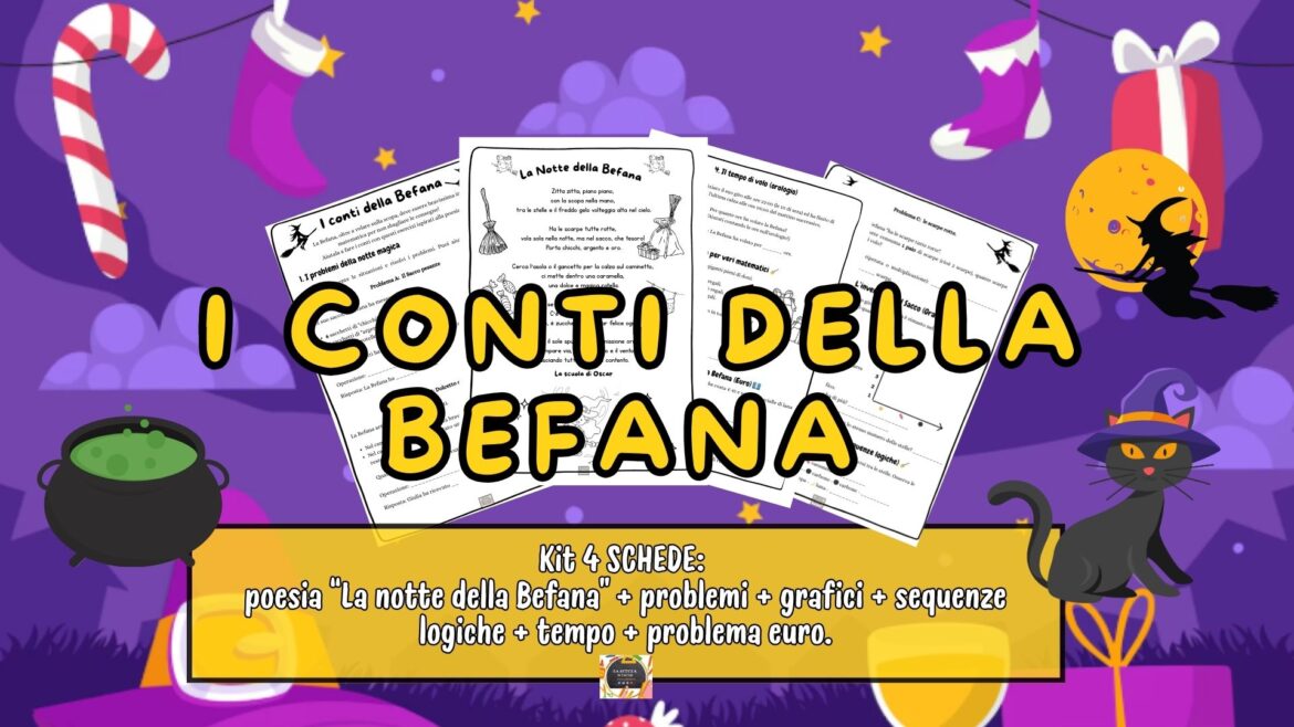 Ecco un’attività di matematica adatta per la 3ª/4ª elementare, basata sugli elementi e i personaggi della poesia “La Notte della Befana”.
