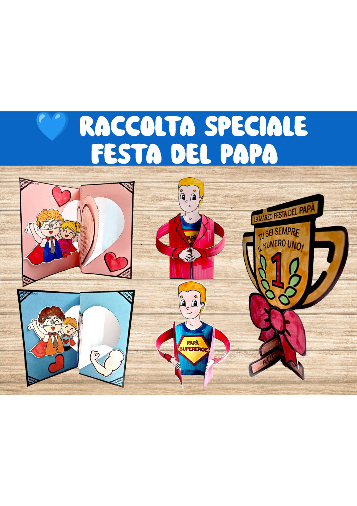 PapĂ Supereroe Un lavoretto divertente e tenero dedicato al papĂ âeroe di ogni bambino, con elementi da personalizzare e colorare.