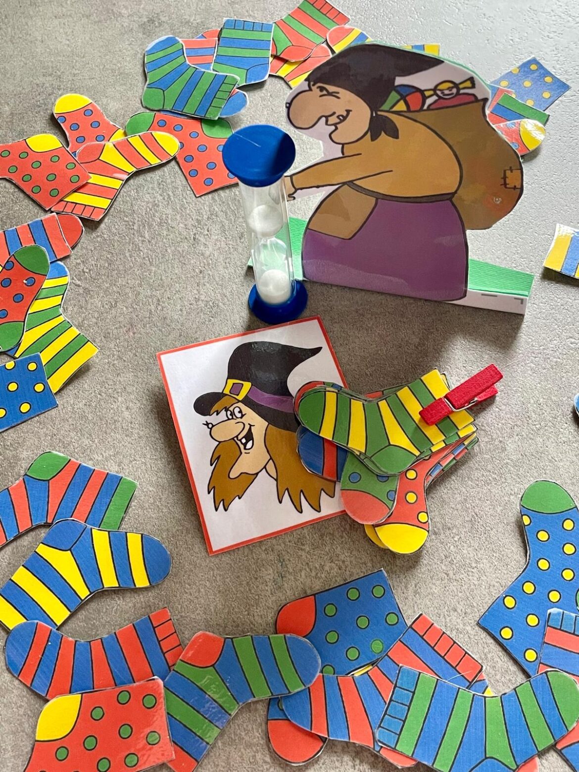 Il gioco: Mescolate per bene i calzini, sparpaglieteli disordinatamente intorno alal Befana dispettosa.