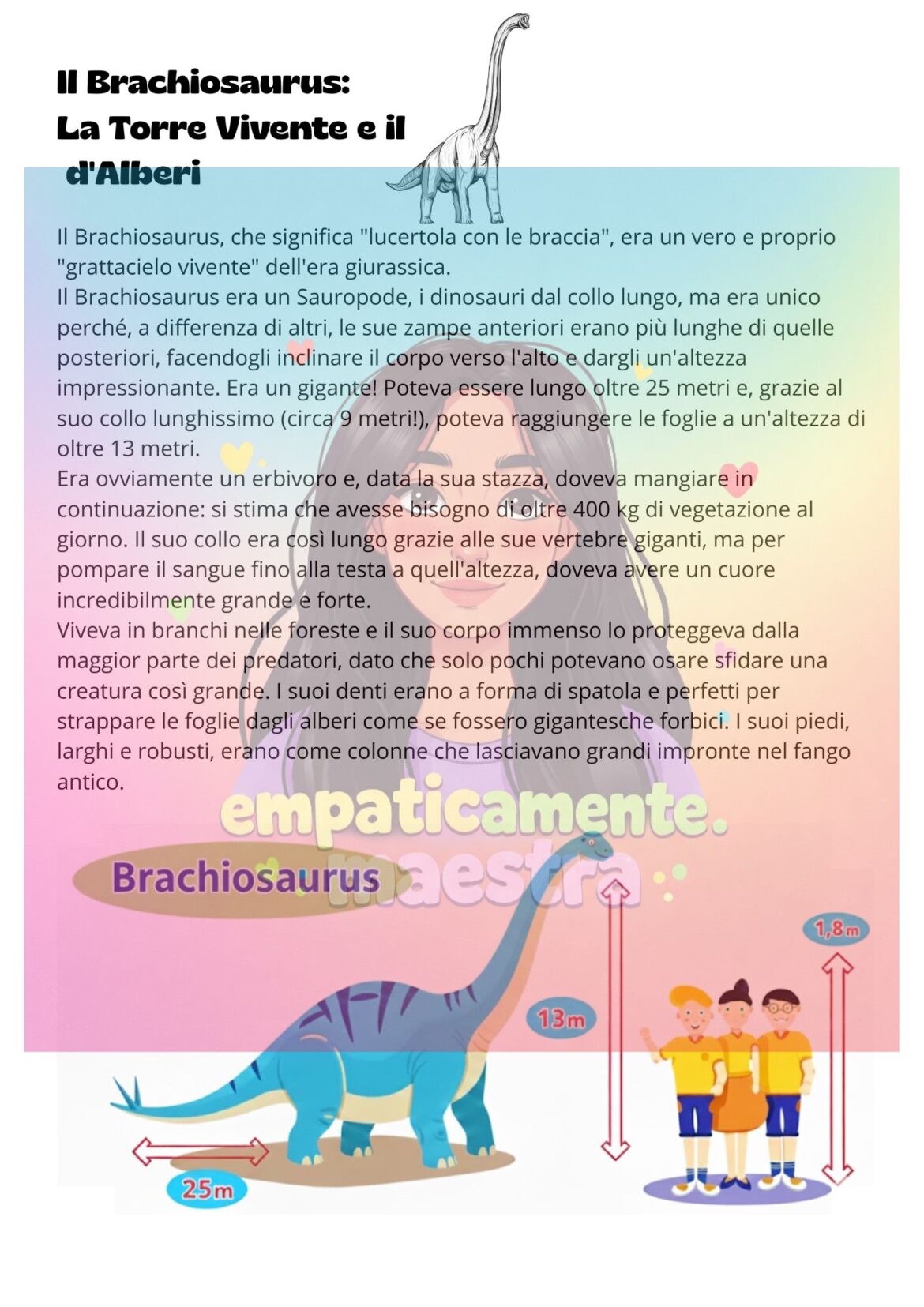– 4 schede con la descrizione di quattro diversi dinosauri con caratteristiche e curiosità;