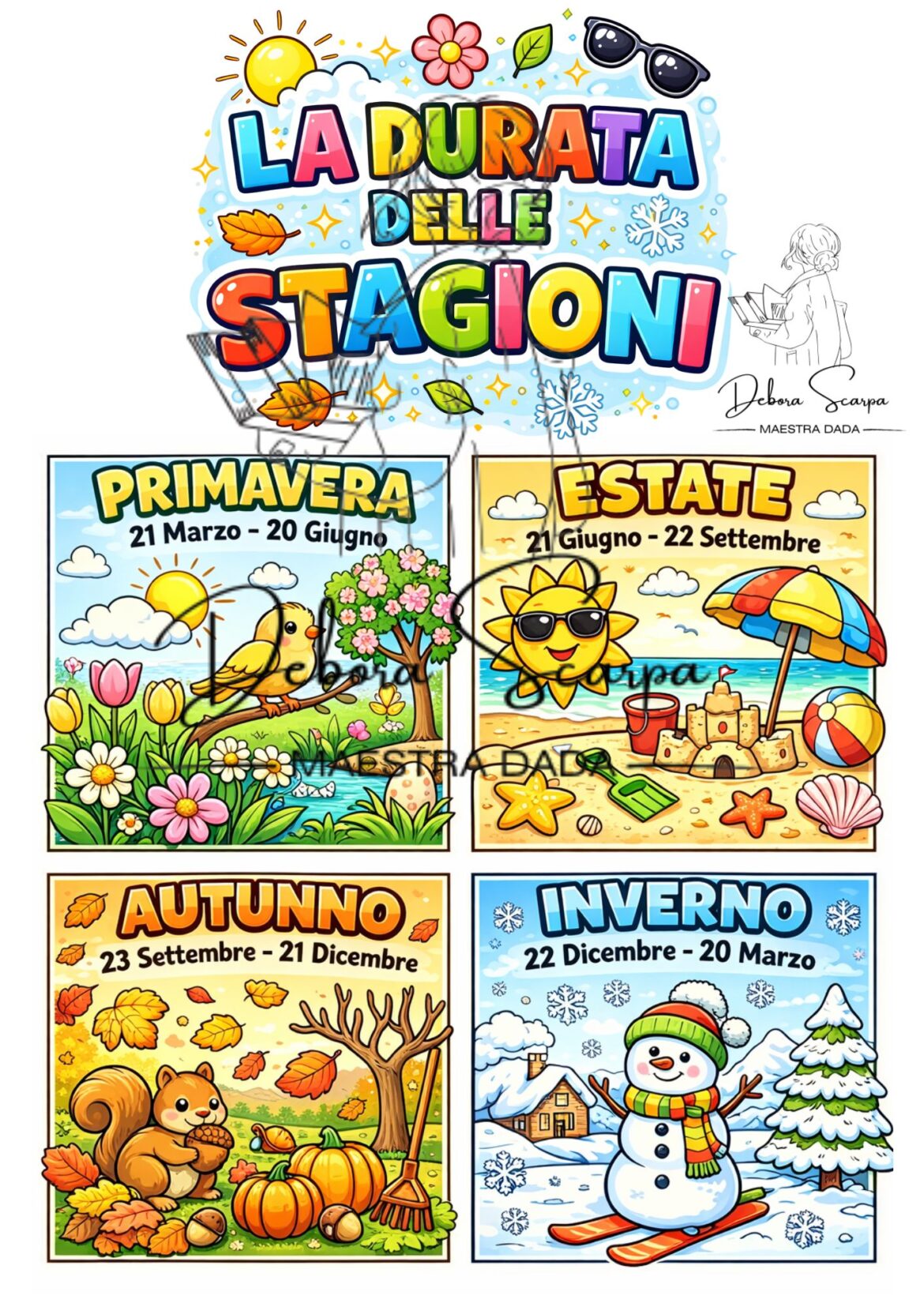 Scheda a colori e in bianco e nero sulla durata delle stagioni
