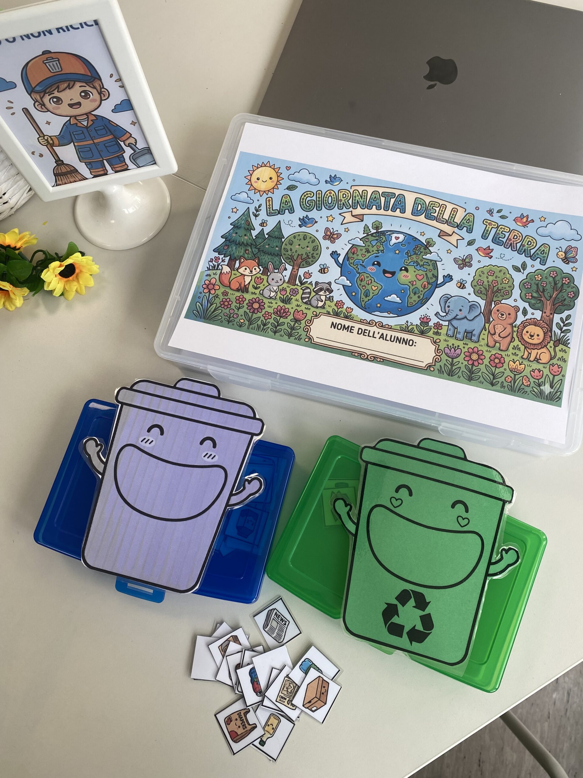 per gli alunni BES). All’interno troverai anche un gioco: agli alunni piace molto dare da mangiare ai cestini della spazzatura, il che rende questa attività molto coinvolgente . Gli alunni scelgono una carta illustrata e poi la inseriscono nel cestino della spazzatura corrispondente. Basterà attaccare i cestini della spazzatura con la bocca larga a un contenitore di plastica con nastro adesivo e il gioco è fatto!