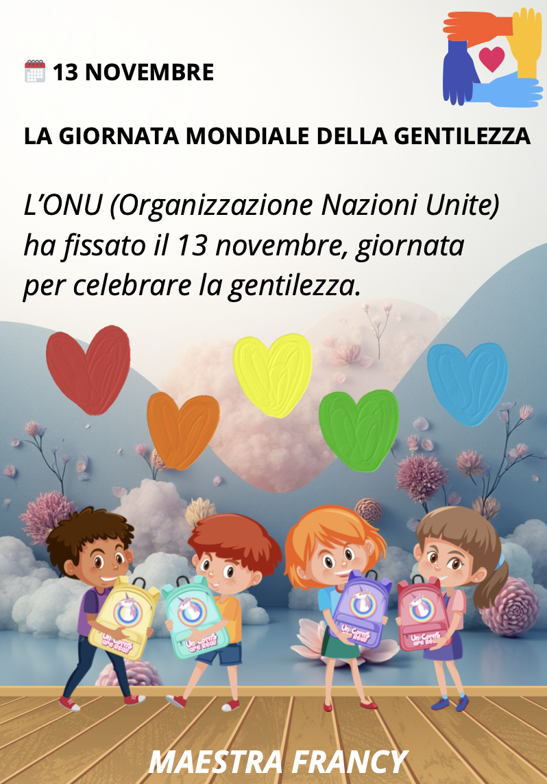 - Un percorso completo sulla Giornata Mondiale della Gentilezza: Il materiale introduce la data e il significato di questa importante ricorrenza, fissata dall’ONU.