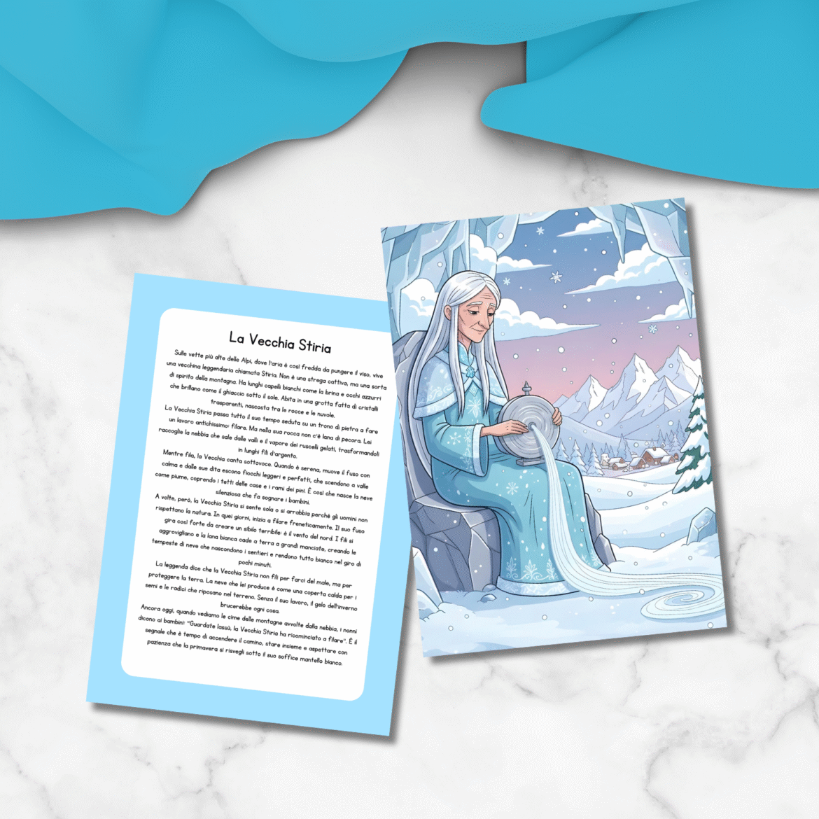 La leggenda della Vecchia Stiria è un racconto che viene dalle montagne della Valle d’Aosta. Spiega, con la dolcezza di una storia e l’incanto di una leggenda, come nasce la neve e perché l’inverno è una stagione necessaria per la nostra terra e la natura.