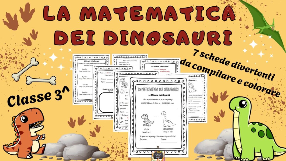 LA MATEMATICA DEI DINOSAURI – kit di 7 Schede di matematica e geometria per la classe 3^ –