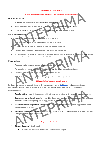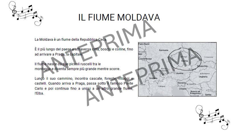 - Guida all’ascolto per il docente: per accompagnarti nell’ascolto della “Moldava”, con dettagli e spunti per coinvolgere i bambini in un’esperienza musicale profonda e interattiva. Scopri come fare in modo che ogni passaggio della musica diventi un momento di esplorazione e comprensione.