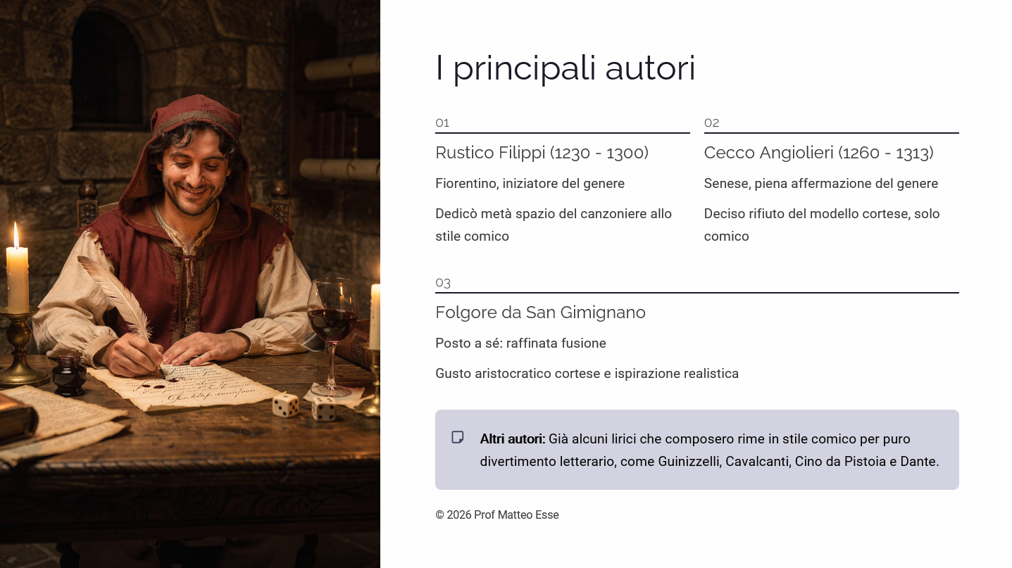 Una lezione pronta e strutturata per spiegare l’alternativa realistica alla lirica cortese nel Duecento toscano.