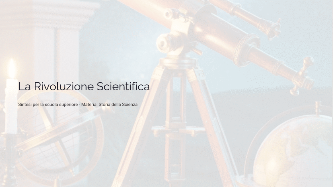 TAG: Rivoluzione Scientifica, Galileo Galilei, Copernico, Cartesio, Metodo Scientifico, Eliocentrismo, Seicento, Storia della Scienza, Keplero, Lezione Pronta.