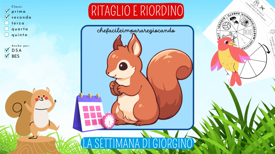 IMPARA I GIORNI DELLA SETTIMANA CON GIORGINO, LO SCOIATTOLO DEL GIARDINO