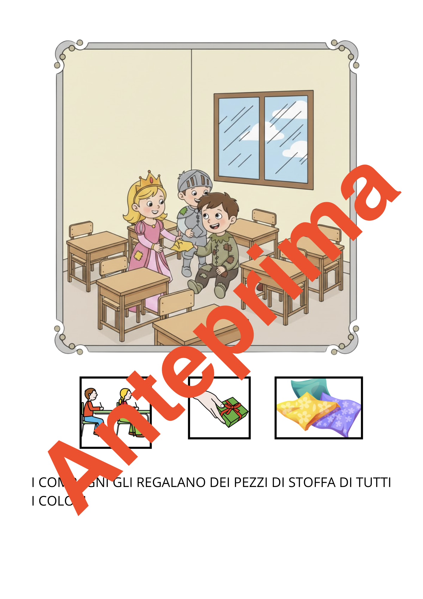 ✅ 4 scene illustrate a colori ✅ Testi semplificati con simboli ✅ Perfetto per la scuola primaria, l’infanzia e il sostegno