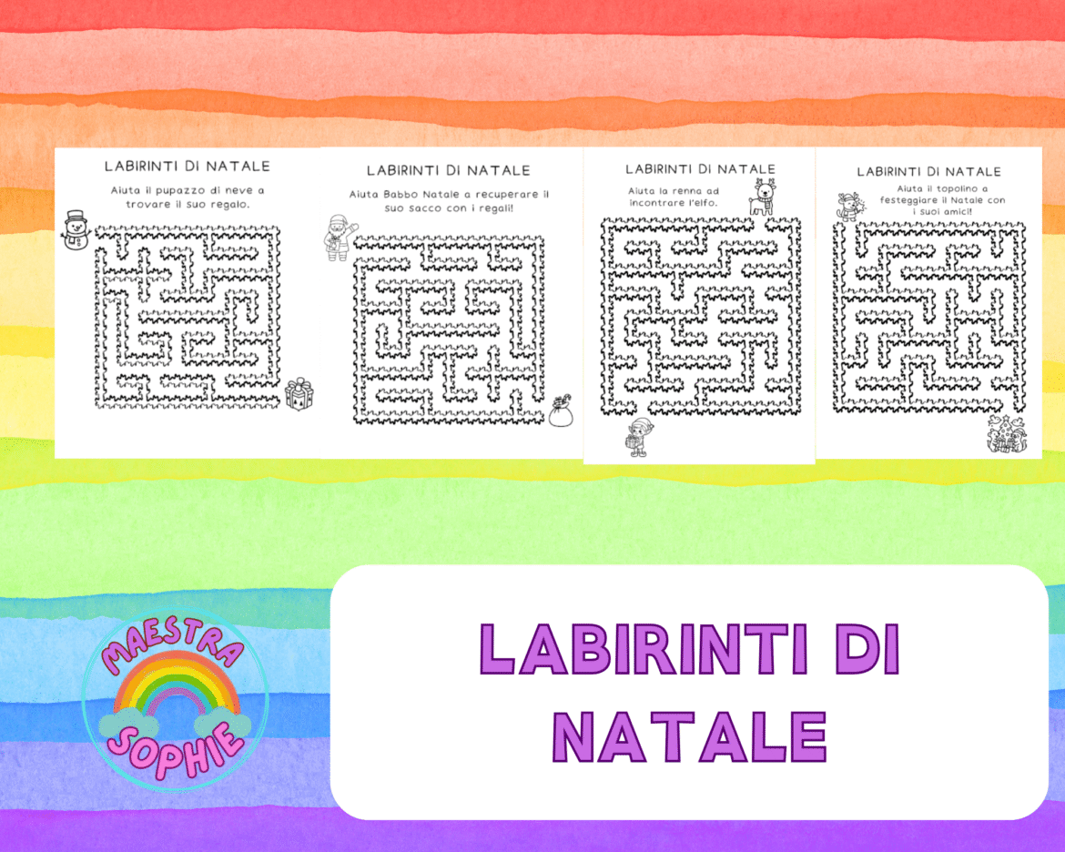 Quattro labirinti per un’attività riempitempo a tema Natale.