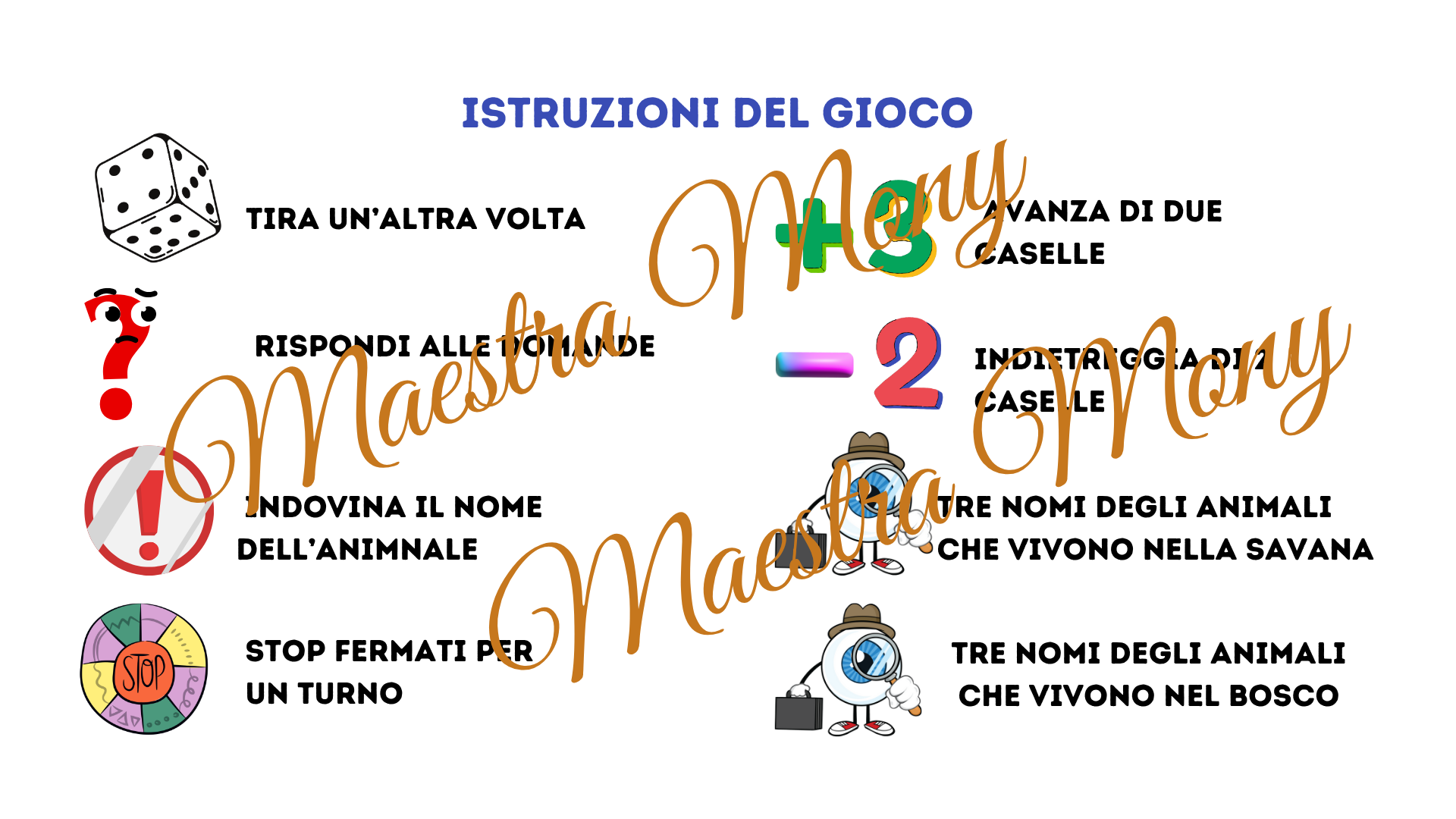 - Istruzioni chiare per il gioco, con azioni come “tira un’altra volta”, “avanza di due caselle” o “indietreggia di due caselle”.