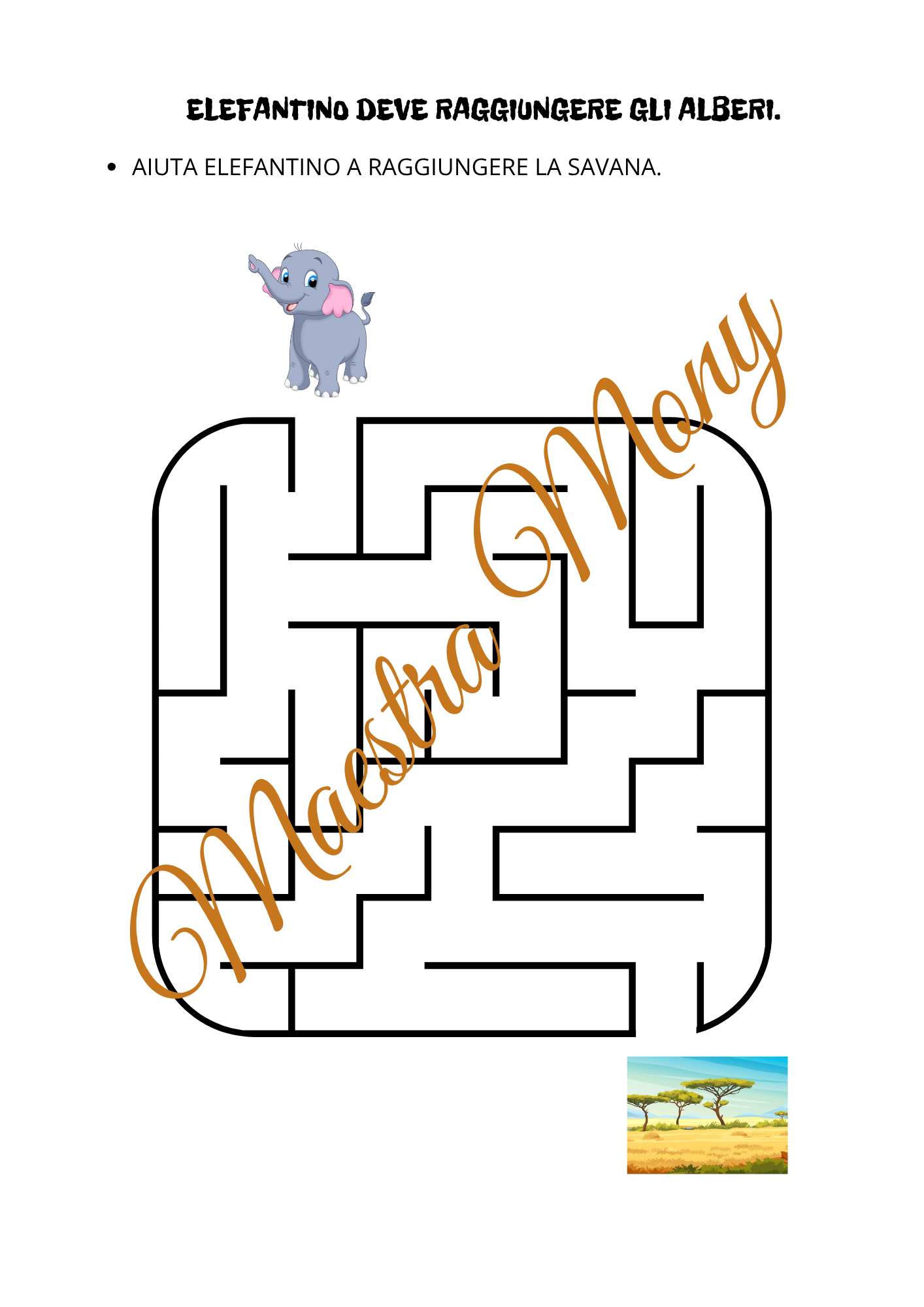 - Labirinti divertenti dove i bambini aiutano gli animali, come l’elefantino a raggiungere la savana o il riccio a trovare il bosco. Ottimi per la logica e la motricità fine.