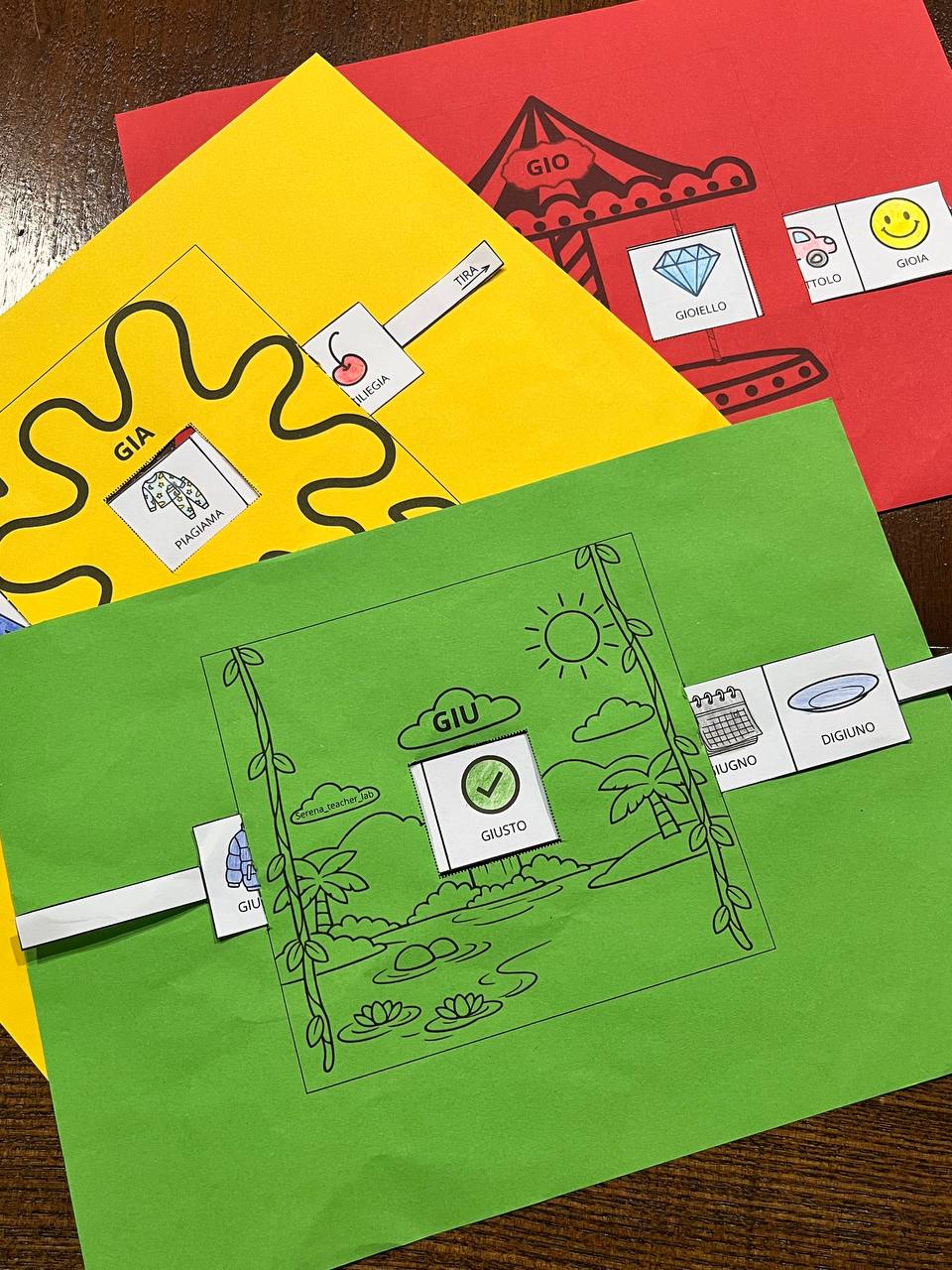 Il lapbook è composto da elementi da ritagliare, incollare e assemblare (alette, spazi interattivi e parole guida) che permettono di esplorare e consolidare le sillabe GIA GIO GIU attraverso il gioco e la scoperta. Le parole proposte accompagnano i bambini nel riconoscimento e nella lettura, favorendo un apprendimento attivo e inclusivo.