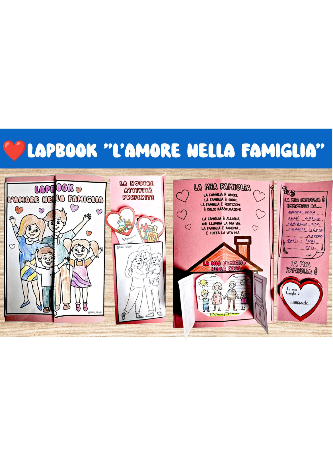 Celebriamo l’amore che ci unisce con un lapbook dolce e creativo! I bambini potranno disegnare la loro famiglia nella casetta, leggere la poesia “La mia Famiglia”, scrivere cosa significa per loro la parola famiglia e completare la frase “La mia famiglia è composta da…”.