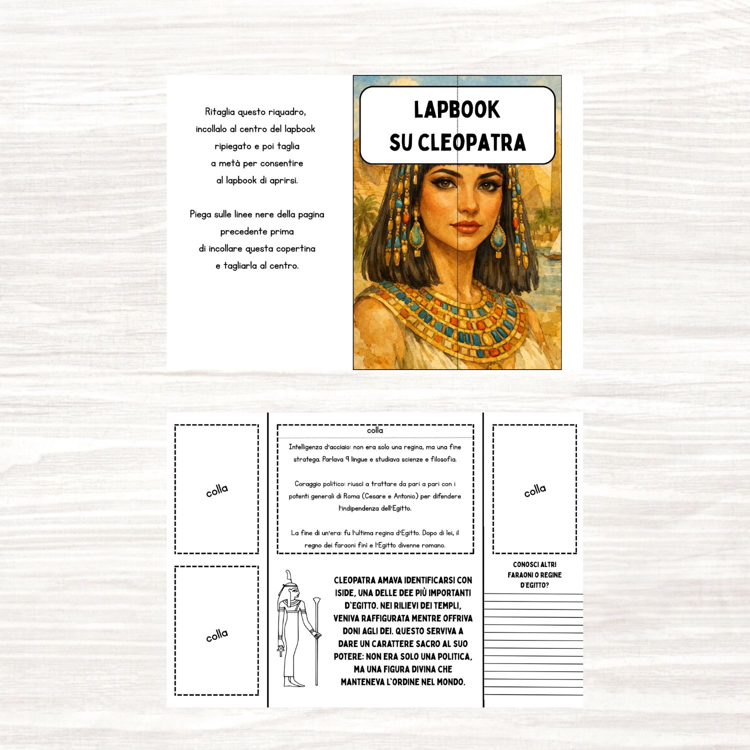 Questo lapbook su Cleopatra è un PDF da stampare, ritagliare e comporre.