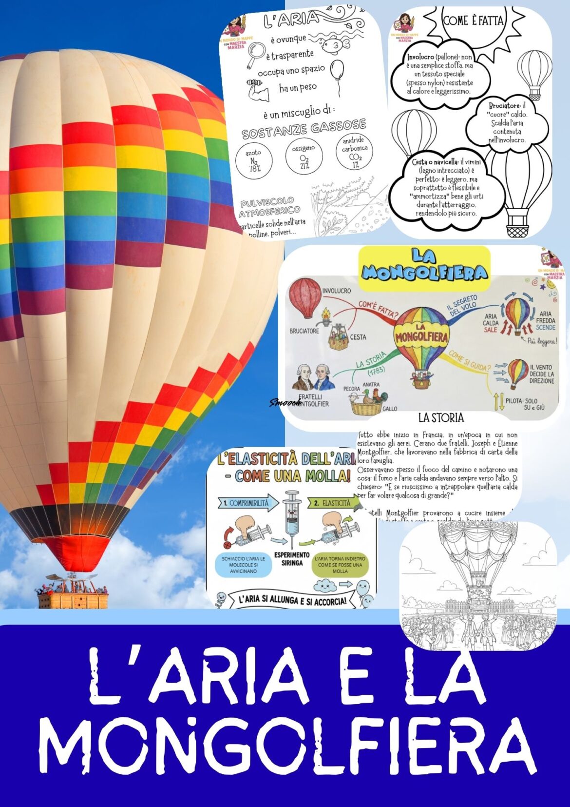 - Mappe concettuali dettagliate sulla mongolfiera: Esplora come è fatta, il suo funzionamento (il segreto del volo), come si guida e la sua affascinante storia.