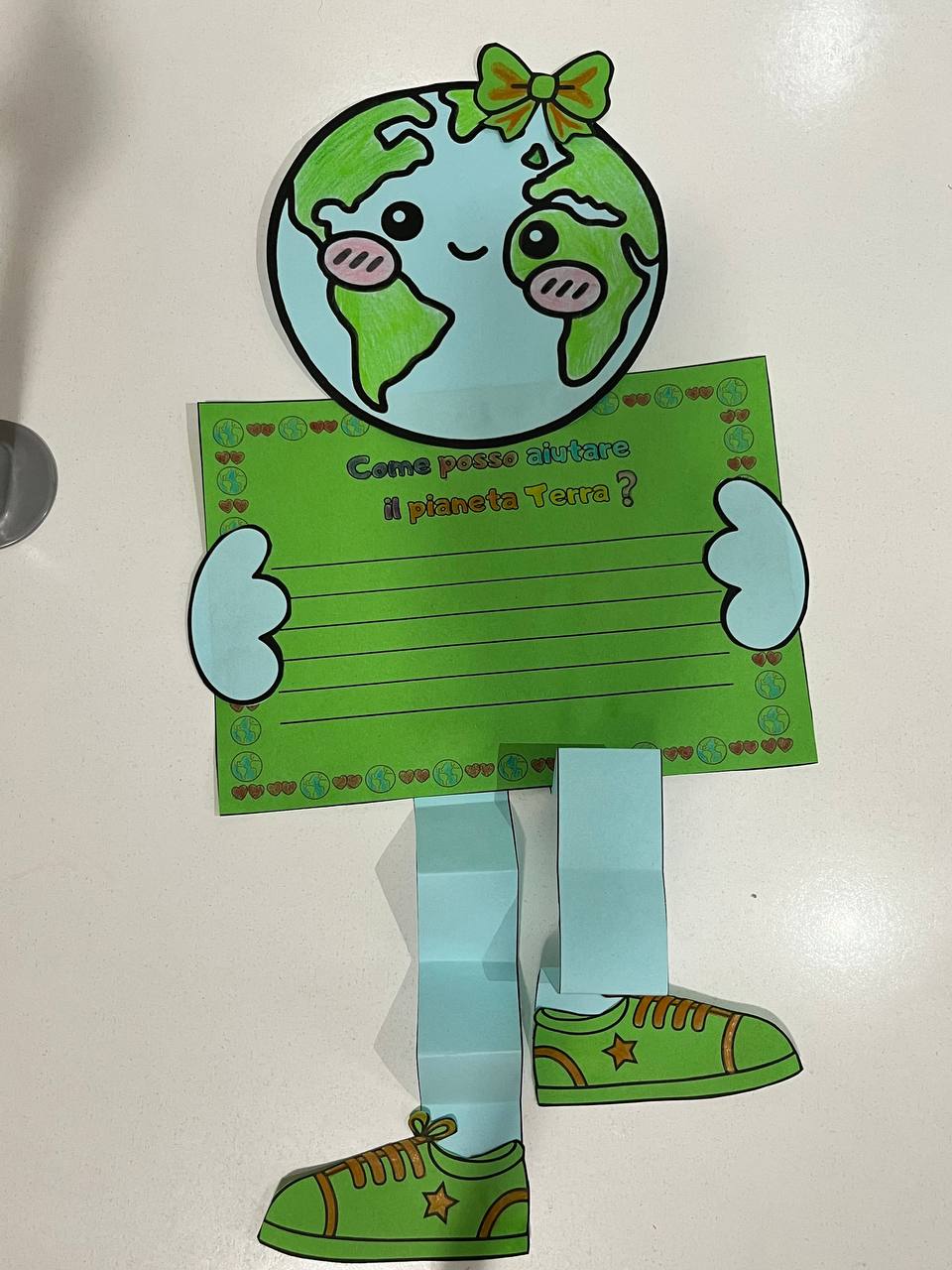 Questo lavoretto per la Giornata della Terra per la scuola primaria è un’attività creativa, coinvolgente e significativa, pensata per sensibilizzare i bambini al rispetto dell’ambiente in modo semplice e attivo. Il progetto raffigura una simpatica Terra con gambe mobili e uno spazio dedicato alla scrittura, dove gli alunni possono riflettere e rispondere alla domanda: “Come posso aiutare il pianeta Terra?”.
