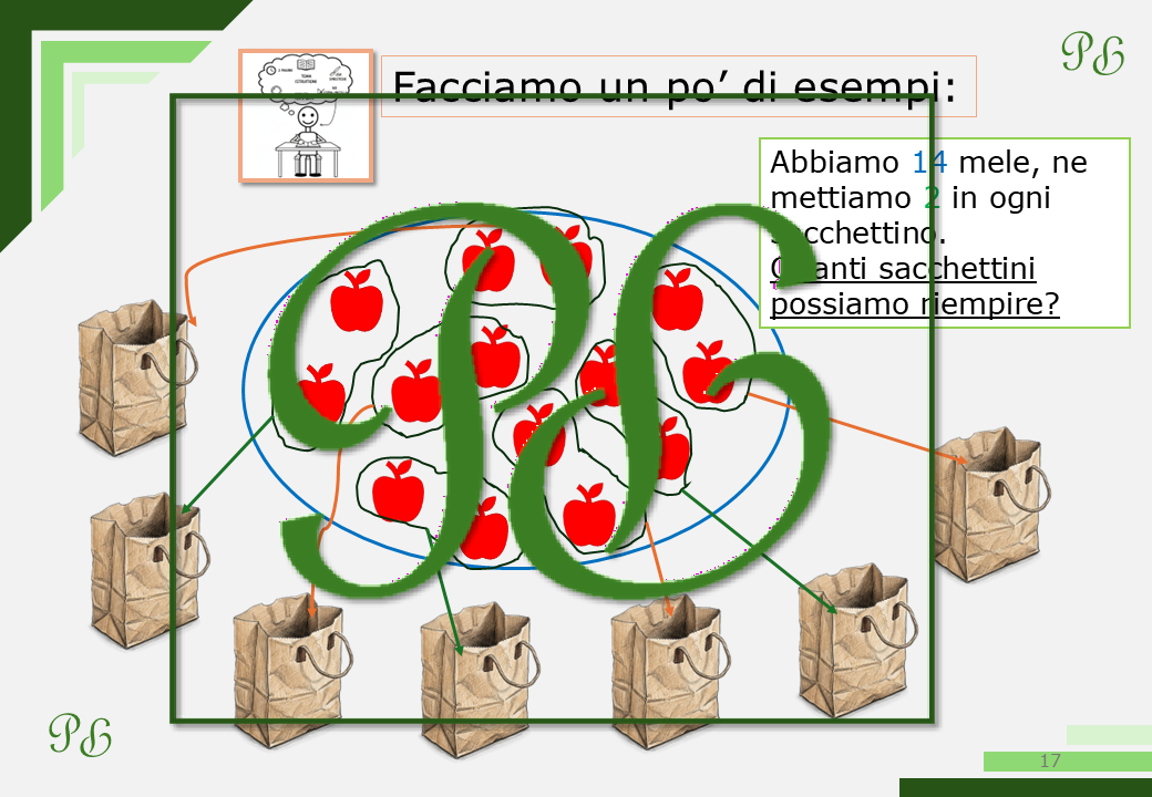 | Note aggiuntive per i genitori | Il materiale affronta quattro concetti fondamentali delle divisioni, consiglio di affrontarne uno alla volta con calma. |