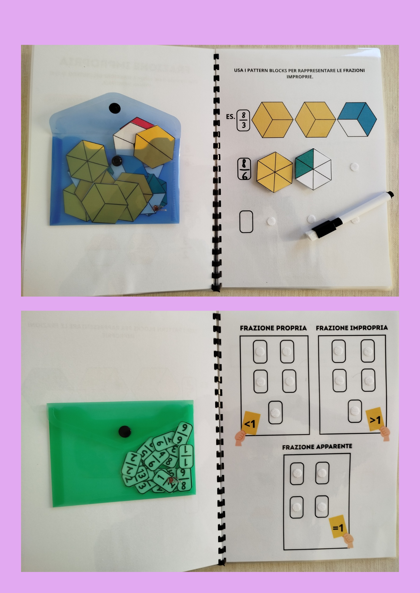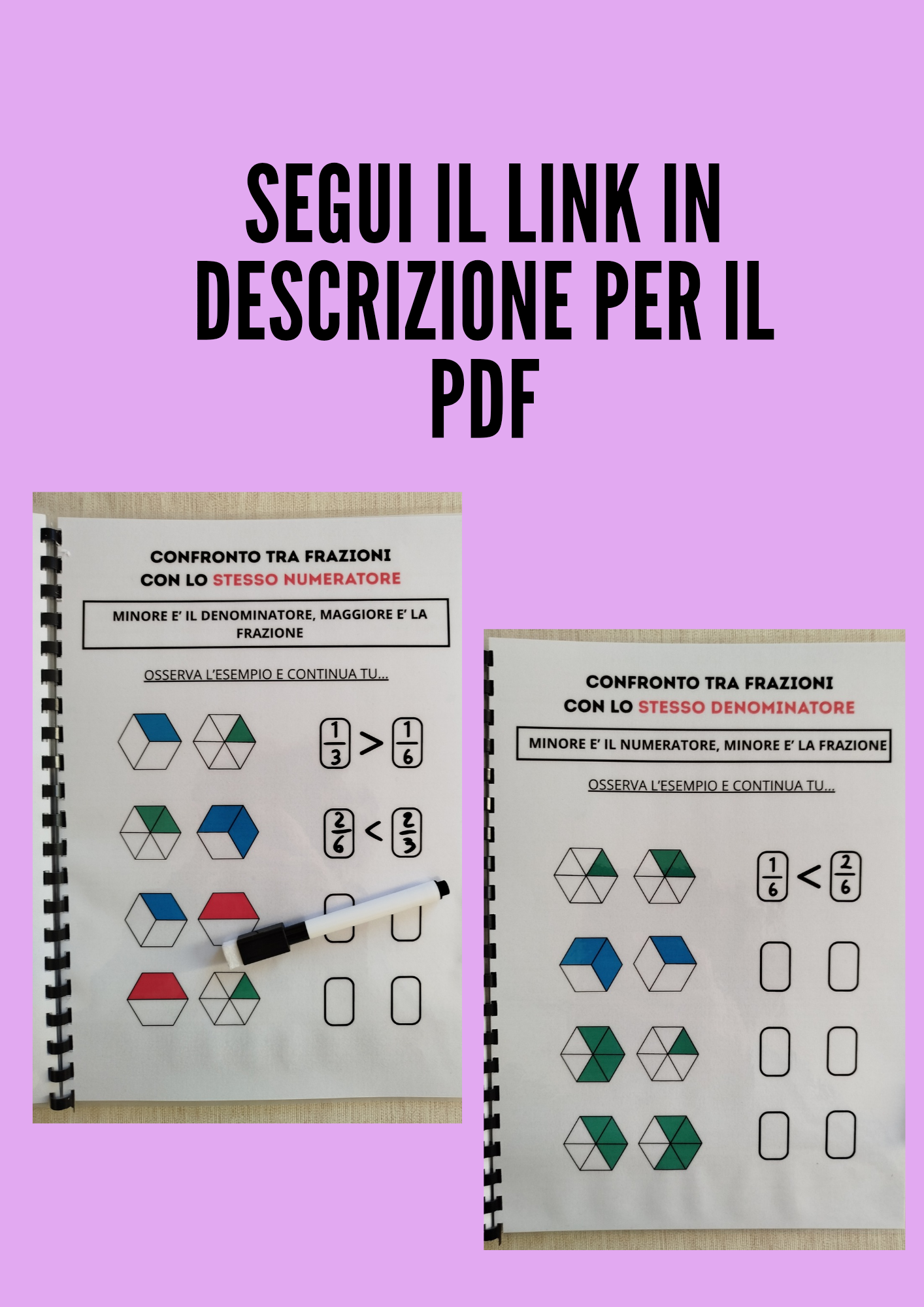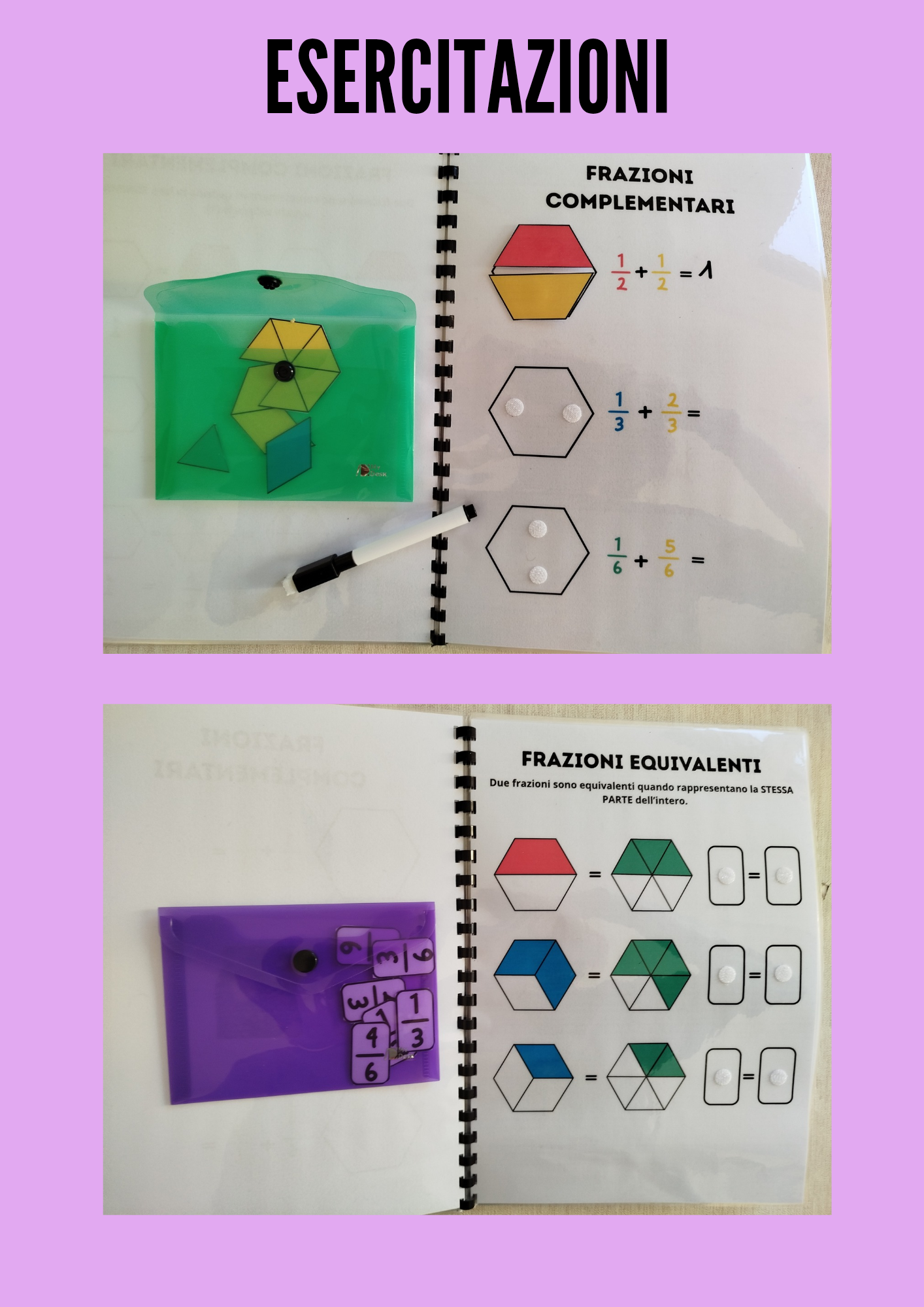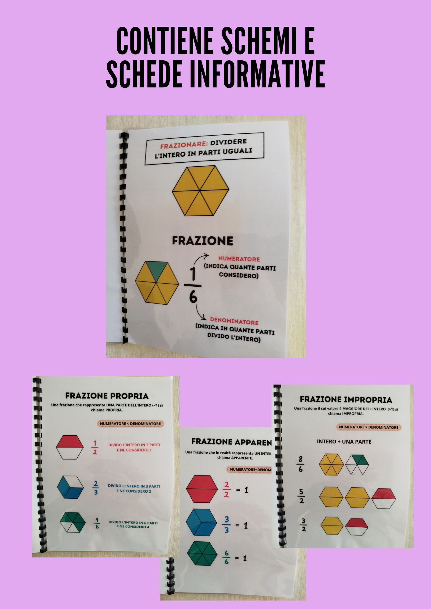 - Il file PDF comprende schede informative, schemi ed esercizi interattivi sulle frazioni. In particolare: unità frazionaria; distinzione tra frazioni proprie, improprie e apparenti; frazioni complementari; frazioni equivalenti; confronto tra frazioni con lo stesso numeratore o lo stesso denominatore.