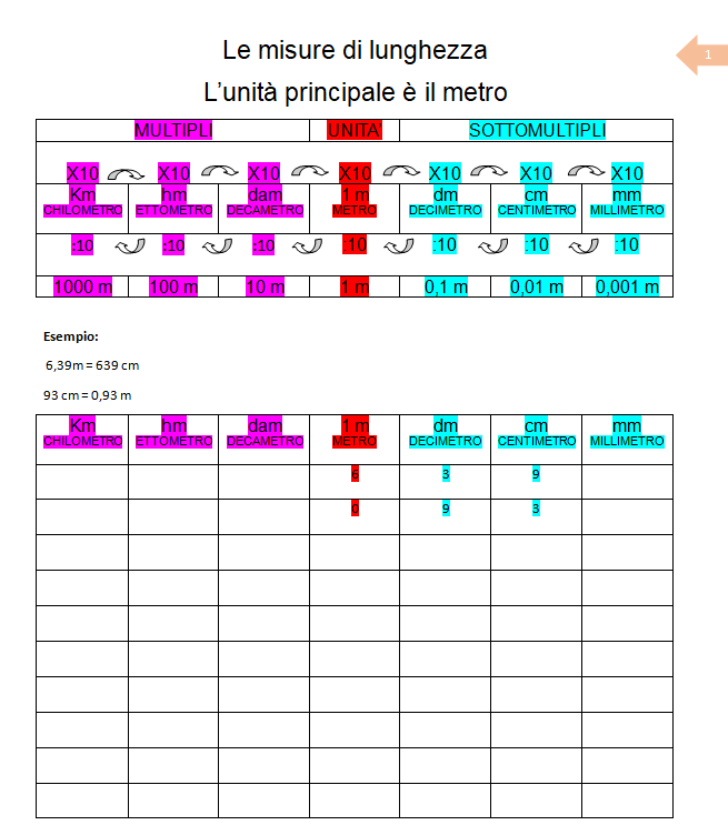 Il file contiene tabelle essenziali per la pratica: queste tabelle sono uno strumento attivo da consultare e utilizzare direttamente per lo svolgimento degli esercizi, permettendo agli alunni di esercitarsi su ogni singolo concetto e facilitando la memorizzazione delle relazioni tra le diverse unità.