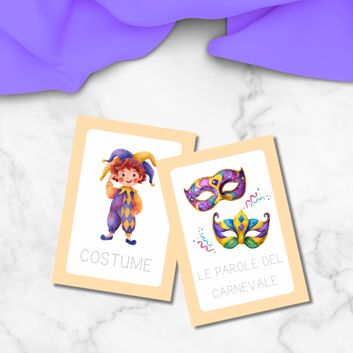 Il PDF include 12 pagine da stampare, che possono essere anche pinzate insieme per ottenere un libretto di Carnevale.