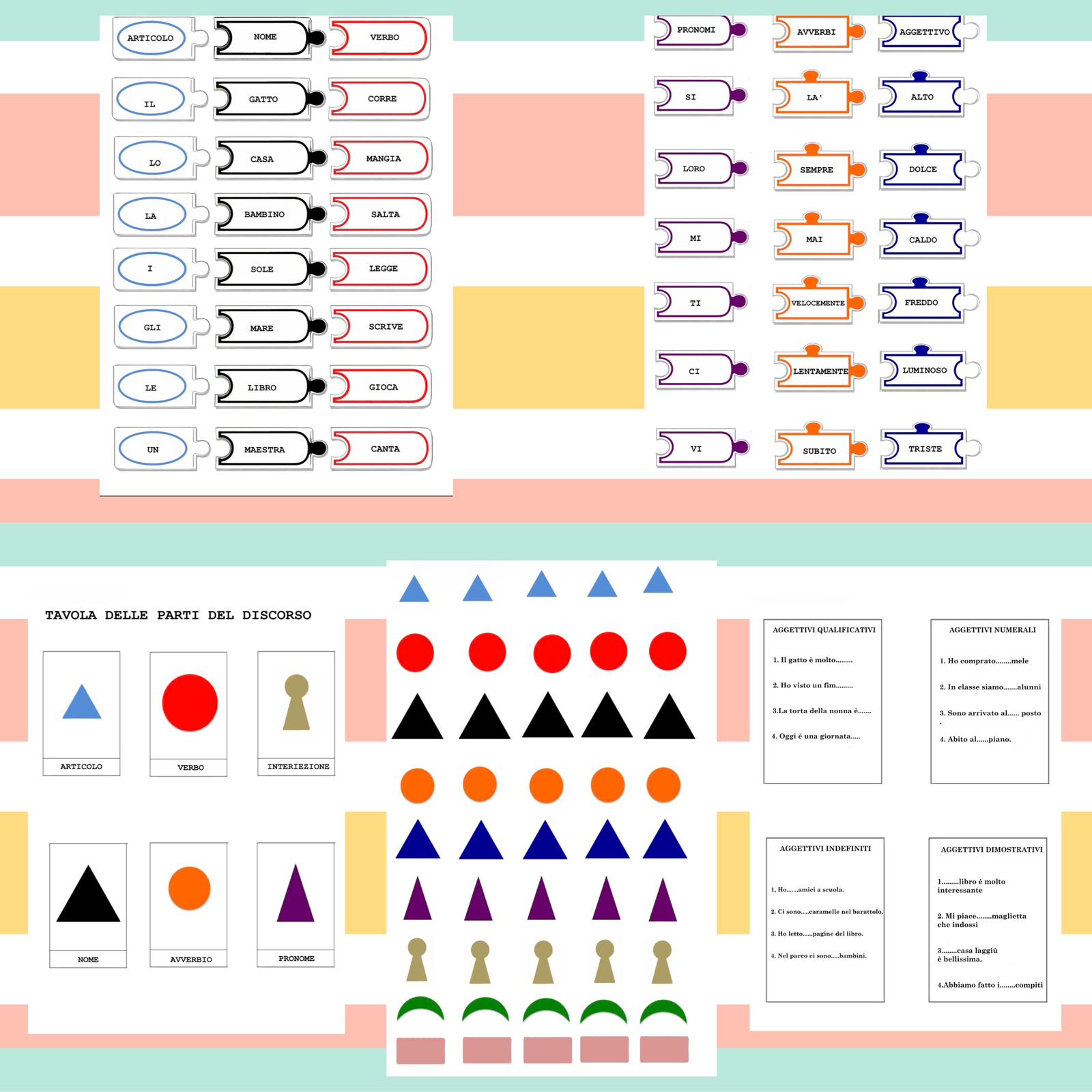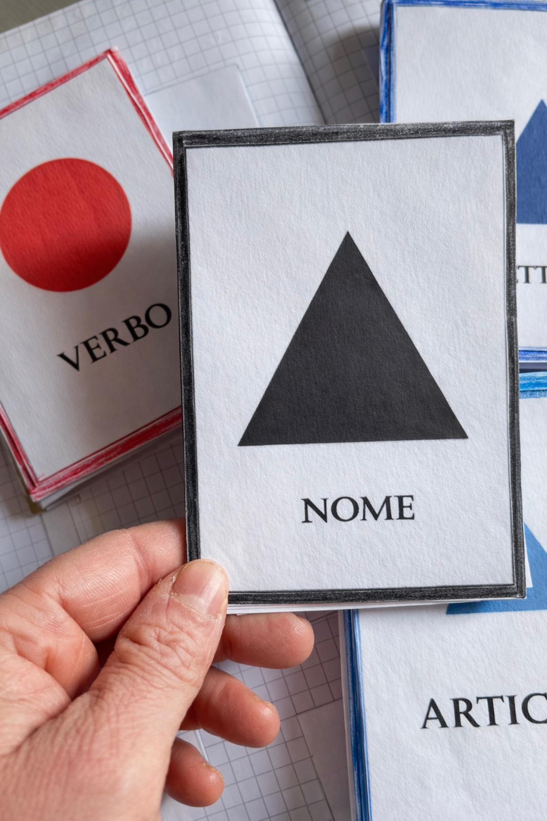 La tavola delle parti del discorso ( Montessori) per imparare e provare ad indovinare.