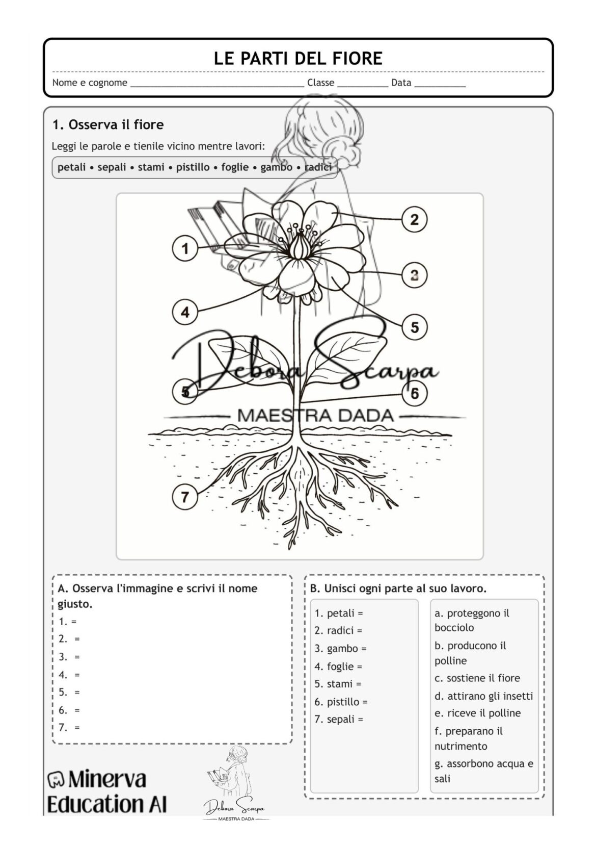 Schede sulle parti del fiore che può essere usata anche come scheda di verifica
