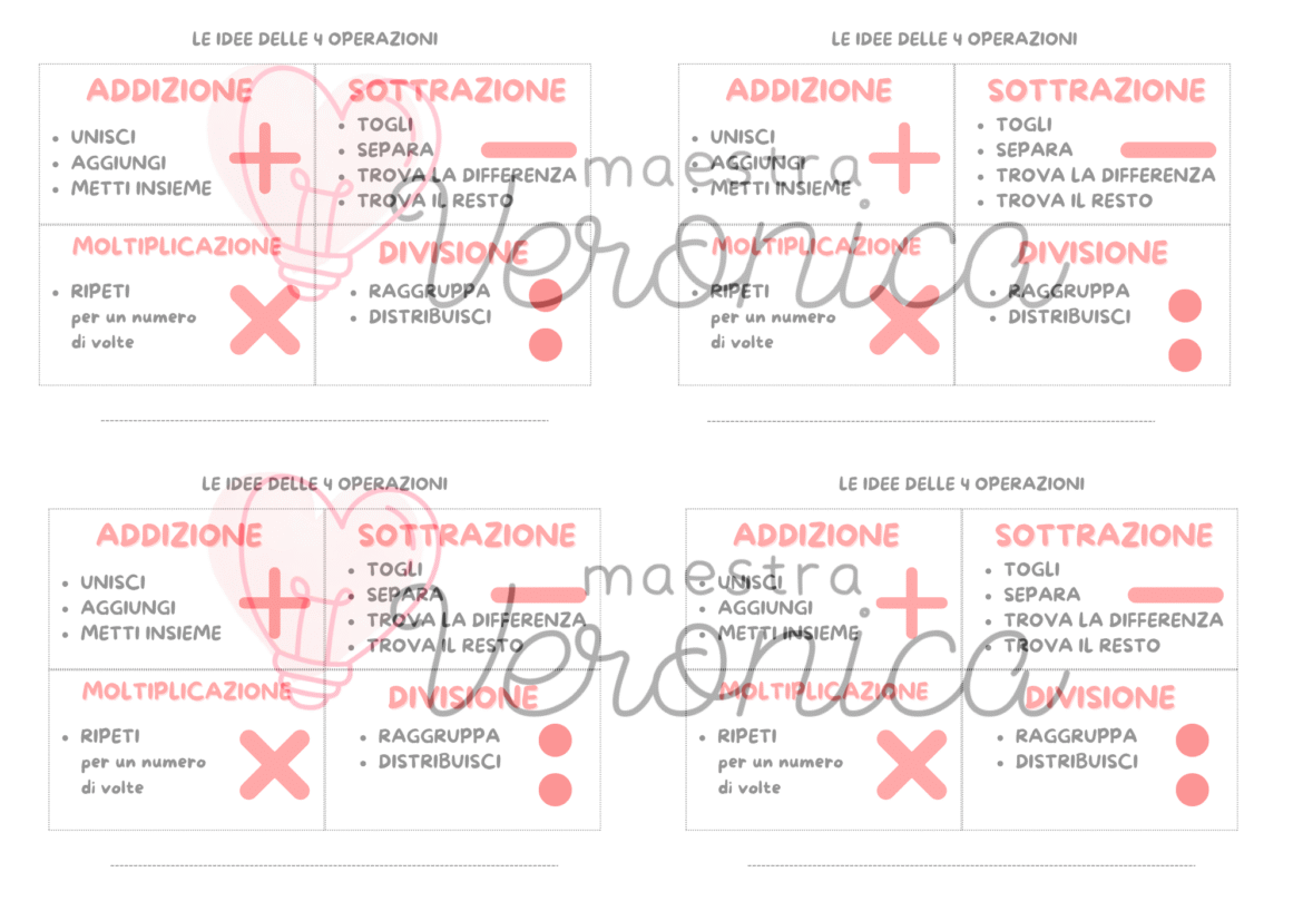 IDEA: stampa, plastifica e i tuoi alunni potranno usarlo per risolvere più facilmente i problemi aritmetici scegliendo l’idea e quindi l’operazione esatta